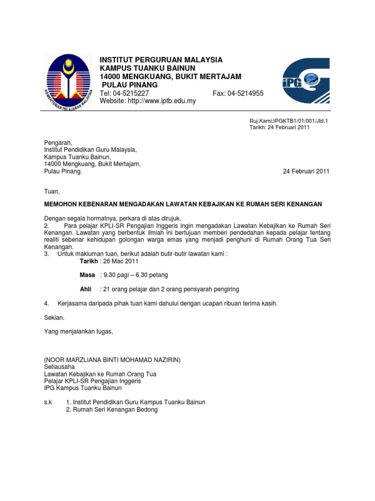 Contoh Surat Kebenaran. surat rasmi lawatan.