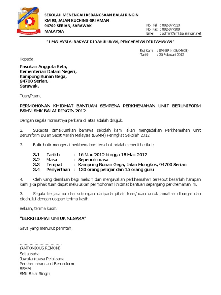 Surat Jemputan Sekolah Perkhemahan Ujian Lencan Keris Emas ...