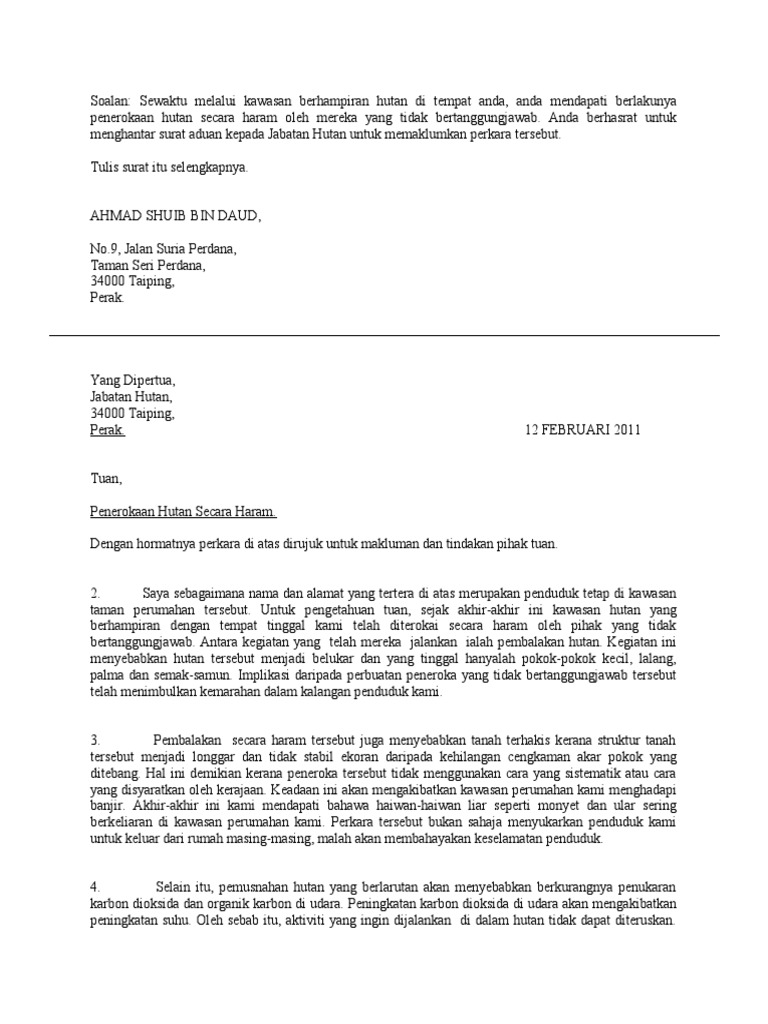 Surat Rasmi Aduan Tentang Kerosakan Kemudahan Awam - Eki ...