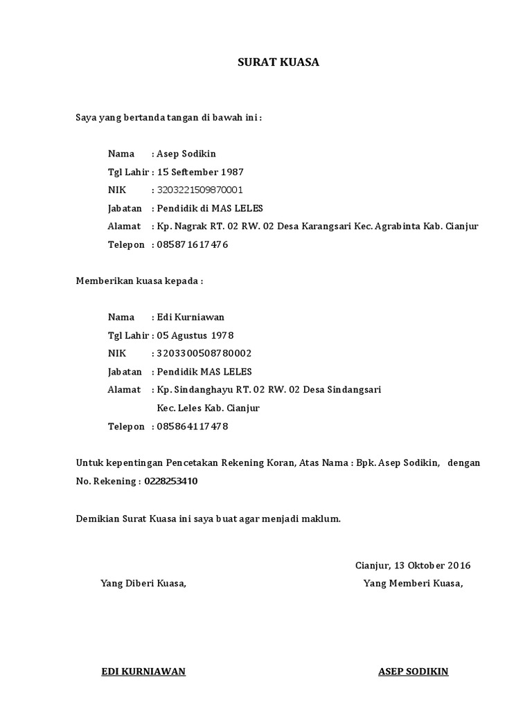 Download Contoh Surat Kuasa Pengambilan Uang di Bank yang Baik