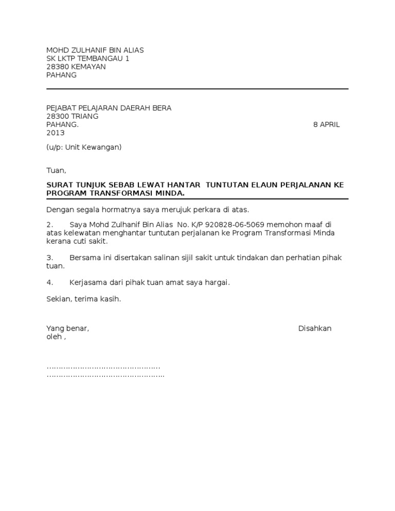 Related Posts To Surat Rasmi Tunjuk Sebab Lewat